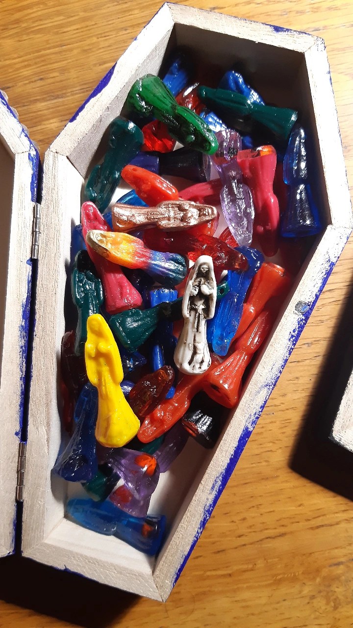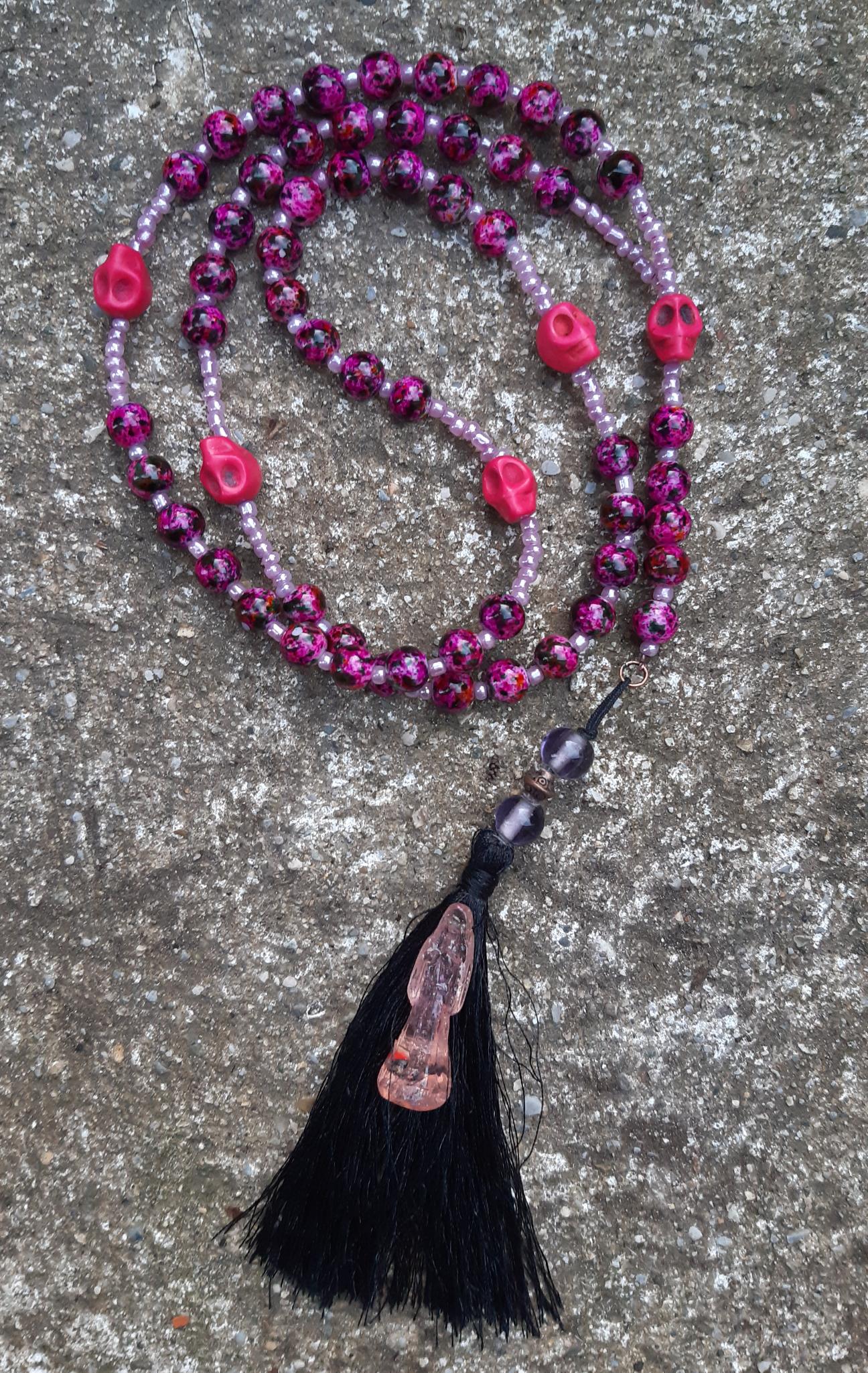 đź’€Artisanat et savoir-faire : je fais toujours attention Ă la composition de mes chapelets. J’essaie d’allier originalitĂ© et praticitĂ©. Ils ne sont pas lĂ pour ĂŞtre uniquement esthĂ©tiques : ce sont des outils qui doivent ĂŞtre solides et durables dans le temps. Tout comme les statues que j’importe du Mexique, ils doivent aussi rĂ©pondre aux diffĂ©rents domaines/couleurs de la Santa Muerte. Chaque statues importĂ©es est consacrĂ©e par mes soins sur mon autel : de la petite santita de 3cm Ă la la moyenne de 20cm. Les chapelets sont dĂ©posĂ©s Ă©galement sur mes autels pour ĂŞtre chargĂ©s par la Santa.