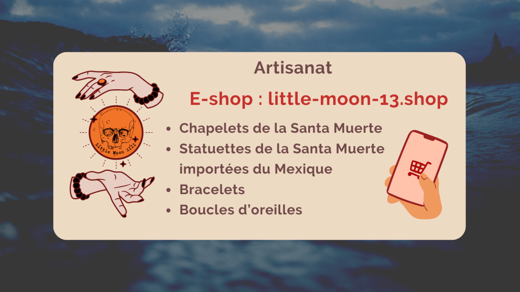 Pour découvrir mes créations et acheter mes outils dévotionnels dédiés à la Santa Muerte suivez ce lien :